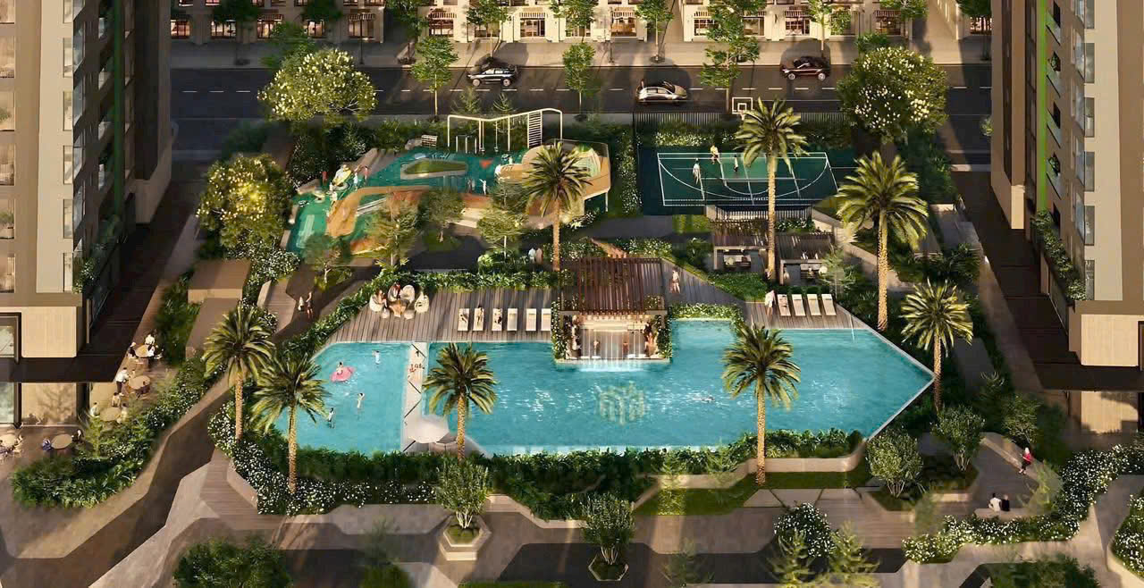• +27 tiện ích ngoài trời: Bể bơi ngoài trời, bể Jacuzzi, sân chơi trẻ em, sân thể thao…